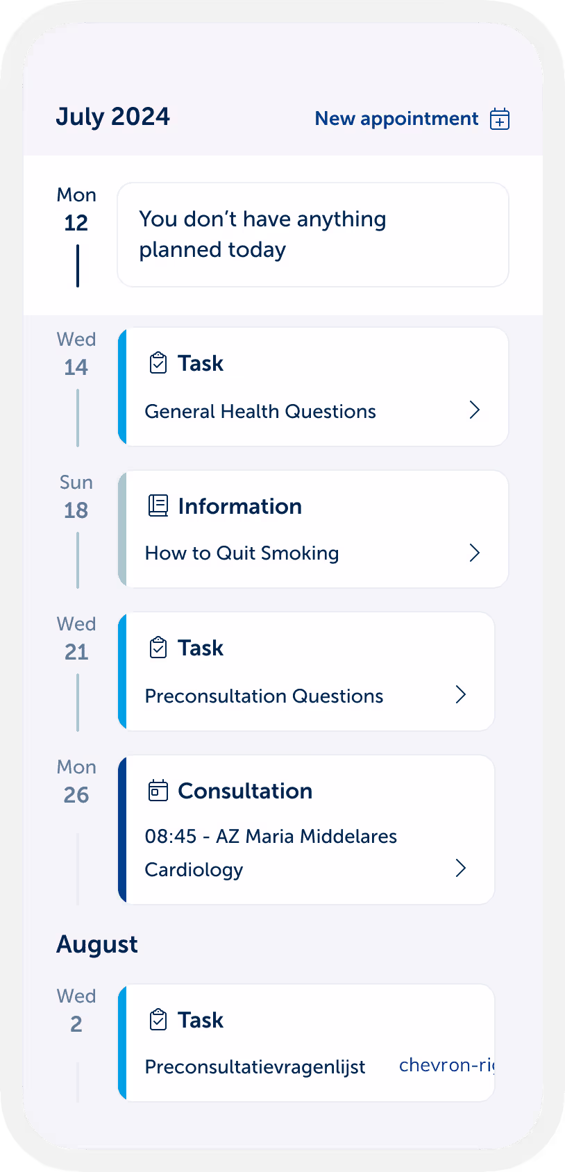 As a digital frontrunner, Maria Middelares continues to explore new ways to enhance the patient journey. While not all possibilities are already live today, these future opportunities reflect the hospital’s ambition to keep evolving toward a fully patient-oriented care and cure continuum.
