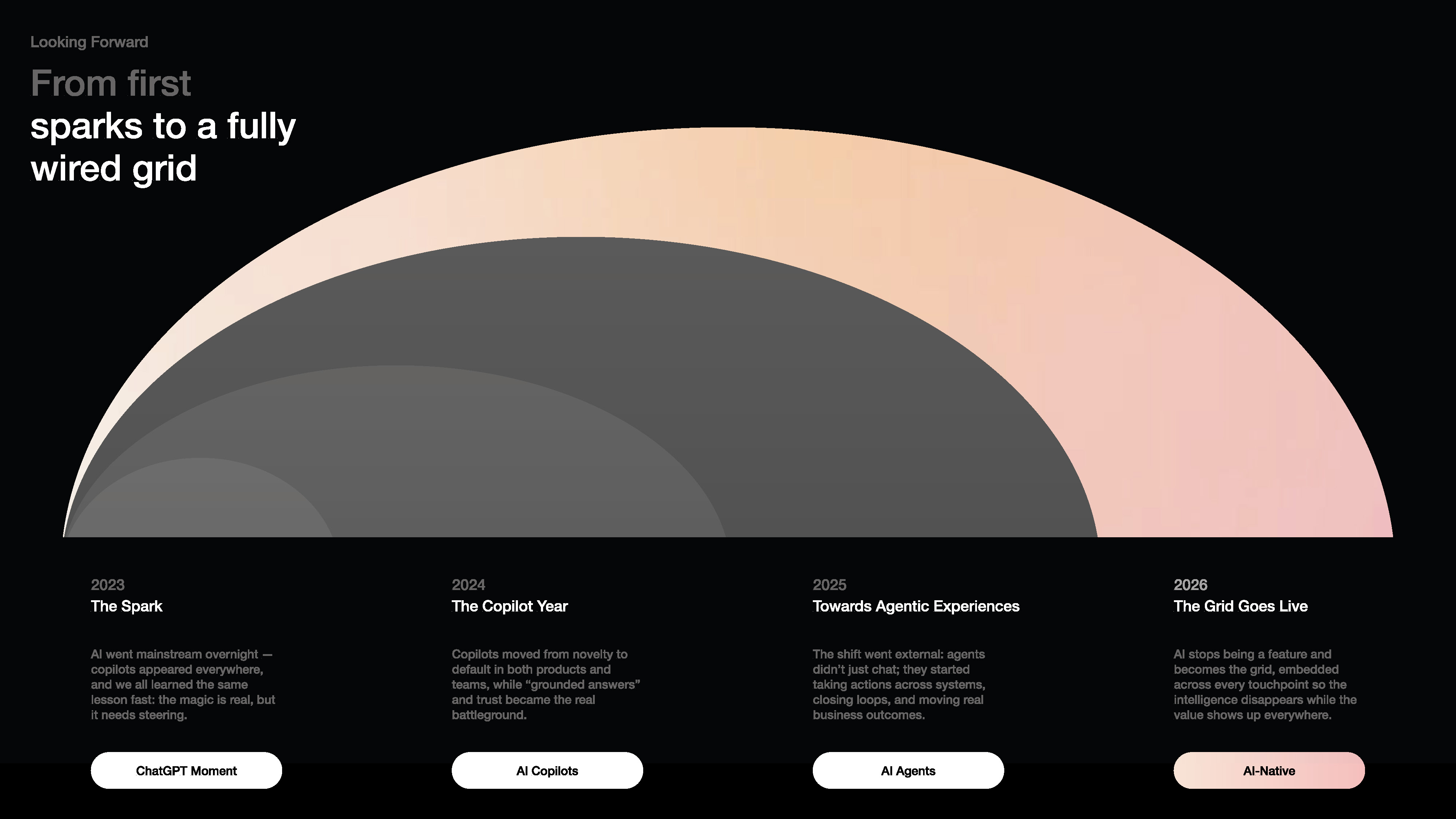 AI becomes the grid: invisible infrastructure under every touchpoint, powering 100% AI‑native experiences.