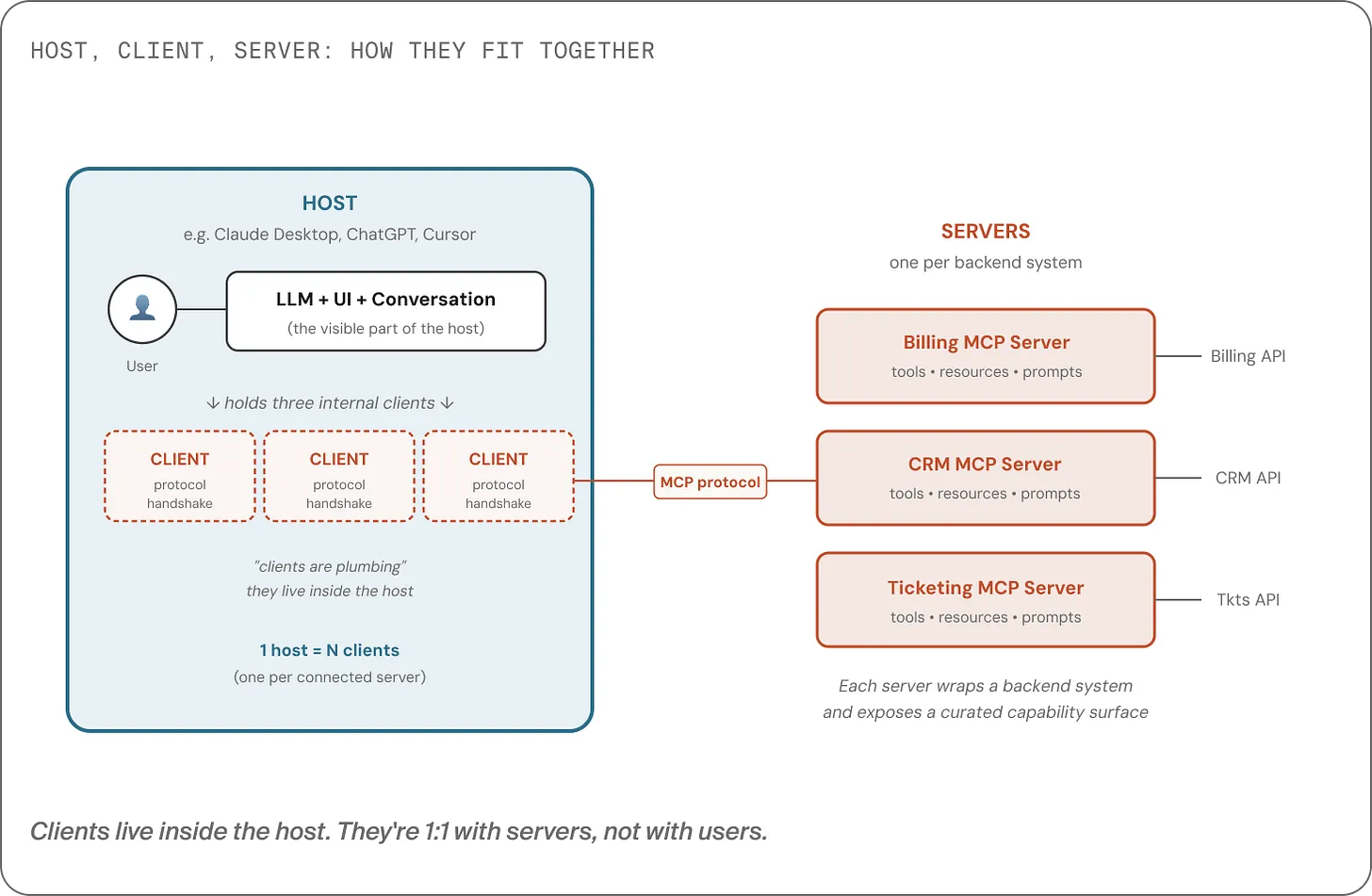 - Host: the app the user interacts with (ChatGPT, Claude Desktop, Cursor, your product)