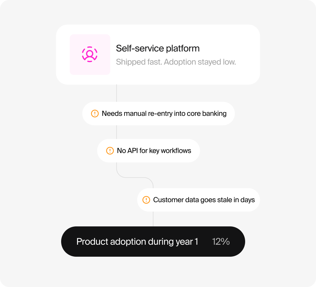 Decision cycles are slow and political. The organisation optimizes for risk avoidance, not learning speed. Meanwhile, challengers iterate weekly and reset expectations for onboarding, service, and personalization.